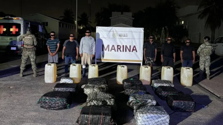Marina asegura embarcación con 650 kilos de cocaína y detiene a seis sujetos en Michoacán tras información de EU