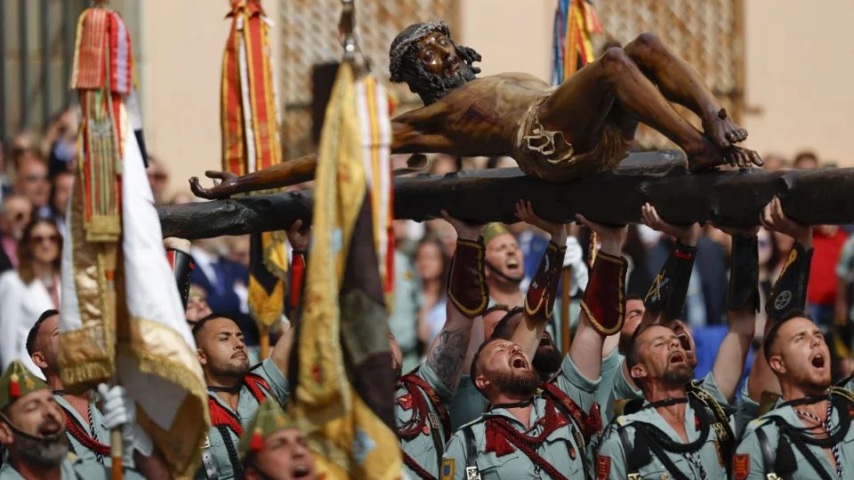 En contraste, en Málaga la atención se centró en el desembarco de la Legión, que fue una fuerza militar creada para las guerras coloniales del norte de África, y el tradicional traslado del Cristo de Mena.