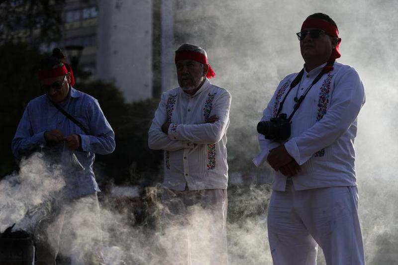 Por la mañana, la presidenta Sheinbaum encabezó la ceremonia de izamiento de la bandera nacional a media asta en memoria de las víctimas de los sismos del 19 de septiembre de 1985 y 2017, en la principal plaza de la capital mexicana.