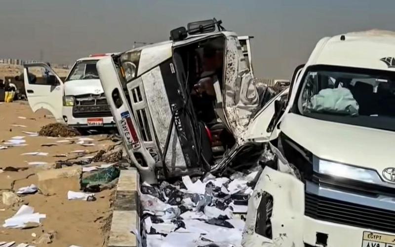 De acuerdo con el medio local Al-Masry Al-Youm, el microbús se salió de su carril y chocó contra varios autos que circulaban en sentido opuesto, lo que provocó una colisión en cadena.